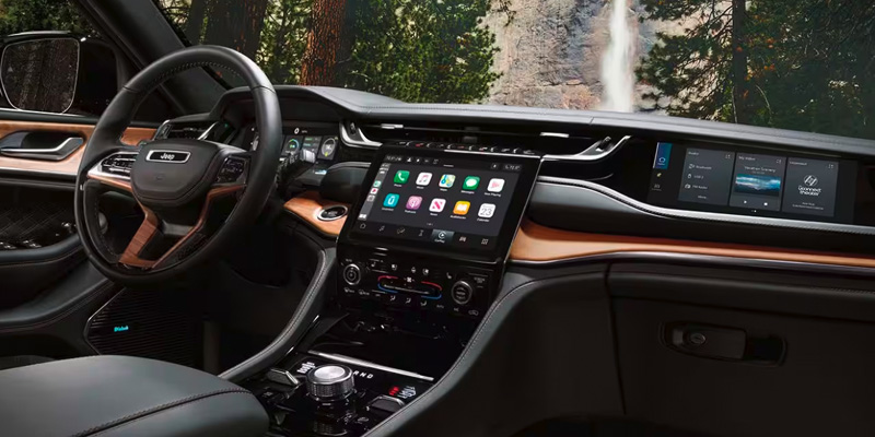 Even at the entry level, the Grand Cherokee 4xe offers a plush experience. It has leatherette seats, heated front seats, heated second-row seats, driver seat memory, nine amplified speakers with a subwoofer, a dual-pane panoramic sunroof, and a heated steering wheel.