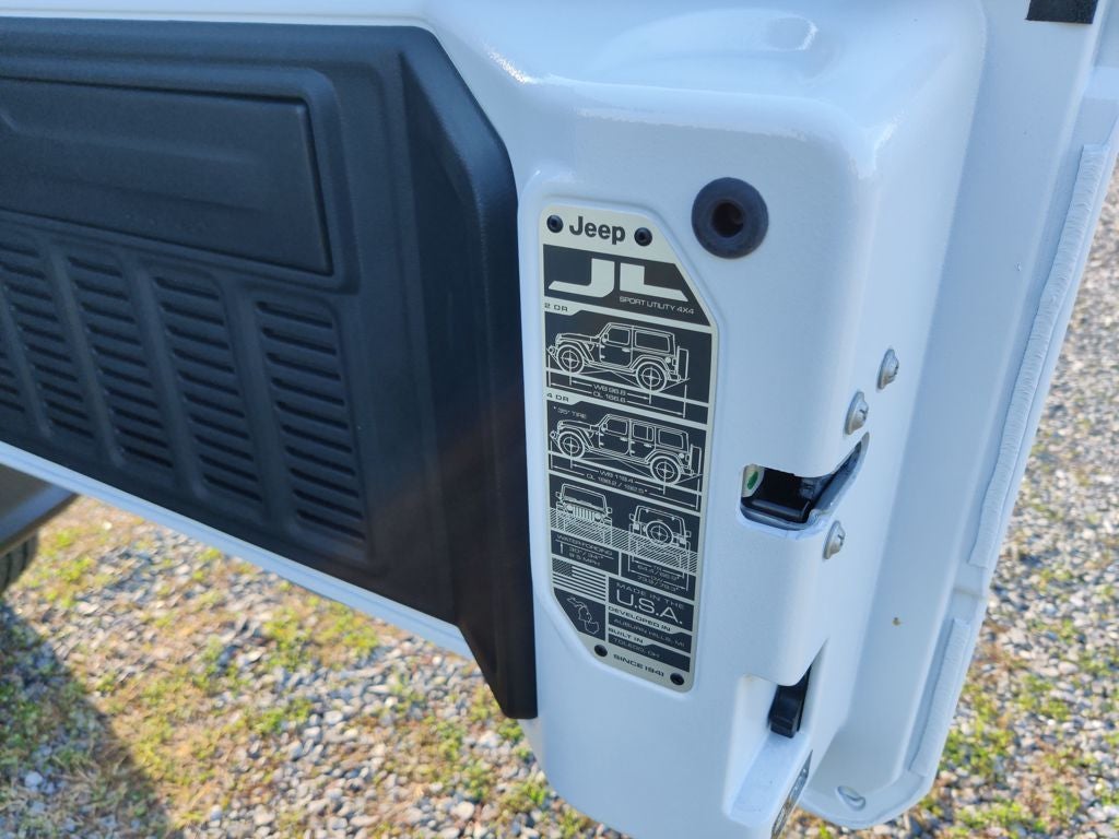 Quick Order Package 22G, Sahara Popular Equipment Group (12.3 Touchscreen Display, 4G LTE Wi-Fi Hot Spot, Alpine Premium Audio System, Apple CarPlay, Auto High Beam Headlamp Control, Auto-Dimming Rear-View Mirror, Blind Spot & Cross Path Detection, Connected Travel & Traffic Services, Connectivity - US/Canada, For More Info, Call 800-643-2112, Google Android Auto, GPS Navigation, Hard Seat Back, HD Radio, Integrated Center Stack Radio, Integrated Off-Road Camera, Integrated Voice Command w/Bluetooth®, Leather Wrapped Park Brake Handle, Leather Wrapped Shift Knob, McKinley Trimmed Seats, ParkSense Rear Park Assist System, Power 4-Way Driver Lumbar Adjust, Power 4-Way Passenger Lumbar Adjust, Power Adjust 8-Way Driver Seat, Power Adjust 8-Way Front Passenger Seat, Radio: Uconnect 5 Nav w/12.3 Display, Side Steps, SiriusXM Radio Service, SiriusXM w/360L, and Universal Garage Door Opener), 3.45 Overall Top Gear Ratio, 4-Wheel Disc Brakes, 8 Speakers, ABS brakes, Air Conditioning, Alloy wheels, AM/FM radio: SiriusXM with 360L, Apple CarPlay/Android Auto, Automatic temperature control, Aux Battery, Brake assist, Cloth Low-Back Bucket Seats, Compass, Delay-off headlights, Driver door bin, Driver vanity mirror, Dual front impact airbags, Dual front side impact airbags, Electronic Stability Control, Emergency communication system: Jeep Connect, Front anti-roll bar, Front Bucket Seats, Front Center Armrest w/Storage, Front dual zone A/C, Front fog lights, Front reading lights, Fully automatic headlights, Heated door mirrors, Heated front seats, Heated steering wheel, Heavy Duty Suspension w/Gas Shocks, Illuminated entry, Integrated roll-over protection, Low tire pressure warning, MOPAR All-Weather Floor Mats, MyFlexCare Service Plan, Non-Lock Fuel Cap w/o Discriminator, Occupant sensing airbag, Outside temperature display, Overhead airbag, Panic alarm, ParkView Rear Back-Up Camera, Passenger door bin, Passenger vanity mirror, Power door mirrors, Power steering, Power Top Quarter Window Storage Bag, Power windows, Radio data system, Radio: Uconnect 5 w/12.3 Display, Rear anti-roll bar, Rear reading lights, Rear Window Defroster, Rear Window Wiper/Washer, Remote keyless entry, Removable Rear Quarter Windows, Security system, Sky One-Touch Power Top, Speed control, Split folding rear seat, Steering wheel mounted audio controls, Stop-Start Dual Battery System, Tachometer, Telescoping steering wheel, Tilt steering wheel, Traction control, Trip computer, Variably intermittent wipers, Voltmeter, Wheels: 18 x 7.5 Machine/Painted Gray, and Wheels: 18 x 7.5 Machine/Painted Gray.