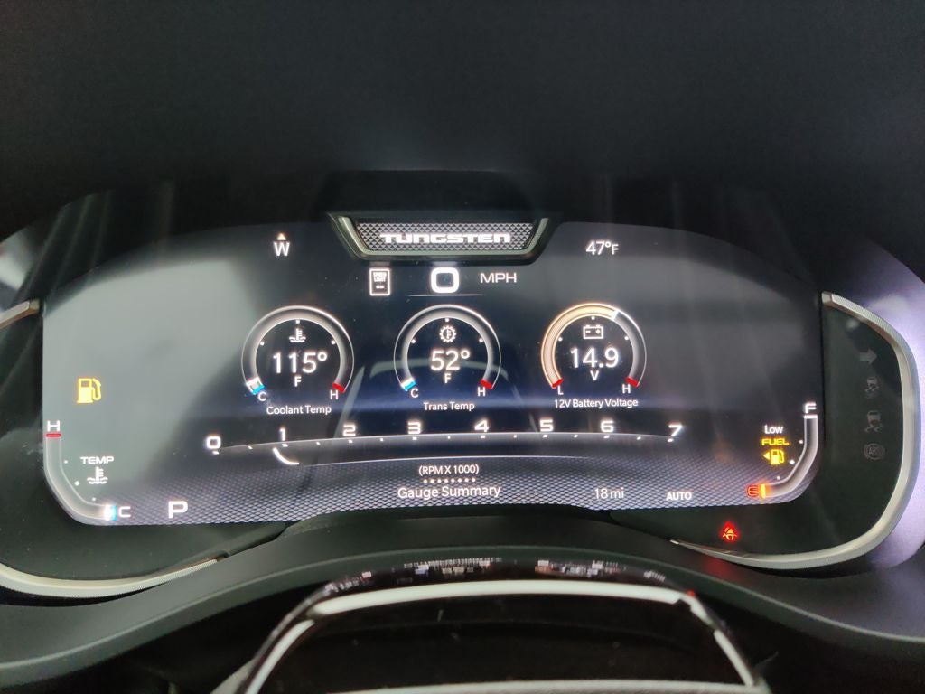 Bed Utility Group (Exterior 115V AC Outlet, MOPAR 4 Adjustable Cargo Tie-Down Hooks, and Truck Bed Cargo Divider), Quick Order Package 22V Tungsten, 12-Way/1-Way Trailer Connector, 3.92 Rear Axle Ratio, 4-Wheel Disc Brakes, ABS brakes, Adjustable pedals, Air Conditioning, Alloy wheels, AM/FM radio, Apple CarPlay/Android Auto, Audio memory, Auto High-beam Headlights, Auto Power-Folding Mirrors, Auto-dimming door mirrors, Auto-Dimming Exterior Driver Mirror, Auto-dimming Rear-View mirror, Auto-leveling suspension, Automatic temperature control, Bodyside moldings, Brake assist, Bumpers: body-color, Chrome Exterior Mirrors, Compass, Delay-off headlights, Driver door bin, Driver vanity mirror, Dual front impact airbags, Dual front side impact airbags, Electronic Stability Control, Exterior Mirrors Courtesy Lamps, Exterior Mirrors with Heating Element, Exterior Mirrors with Memory, Exterior Mirrors with Supplemental Signals, Exterior Parking Camera Rear, Front anti-roll bar, Front Bucket Seats, Front Center Armrest w/Storage, Front dual zone A/C, Front fog lights, Front License Plate Bracket, Front reading lights, Front wheel independent suspension, Fully automatic headlights, Garage door transmitter, Heads-Up Display, Heated door mirrors, Heated front seats, Heated rear seats, Heated steering wheel, Illuminated entry, Leather steering wheel, Low tire pressure warning, Manufacturer's Statement of Origin, Memory seat, Multi-Function Tailgate, MyFlexCare Service Plan, Navigation System, Occupant sensing airbag, Outside temperature display, Overhead airbag, Overhead console, Panic alarm, Passenger door bin, Passenger vanity mirror, Pedal memory, Power adjustable front head restraints, Power door mirrors, Power driver seat, Power moonroof, Power passenger seat, Power steering, Power windows, Premium Leather Bucket Seats, Radio data system, Radio: Uconnect 5 Nav with 14.4 Display, Rain sensing wipers, RAM's Head Badge, Rear anti-roll bar, Rear reading lights, Rear seat center armrest, Rear step bumper, Rear window defroster, Remote keyless entry, Remote Tailgate Release, Security system, Speed control, Split folding rear seat, Steering wheel mounted audio controls, Tachometer, Telescoping steering wheel, Tilt steering wheel, Traction control, Trailer Brake Control, Trip computer, Turn signal indicator mirrors, Variably intermittent wipers, Ventilated front seats, Ventilated rear seats, Voltmeter, and Wheels: 22 x 9 Polish/Painted with Inserts.