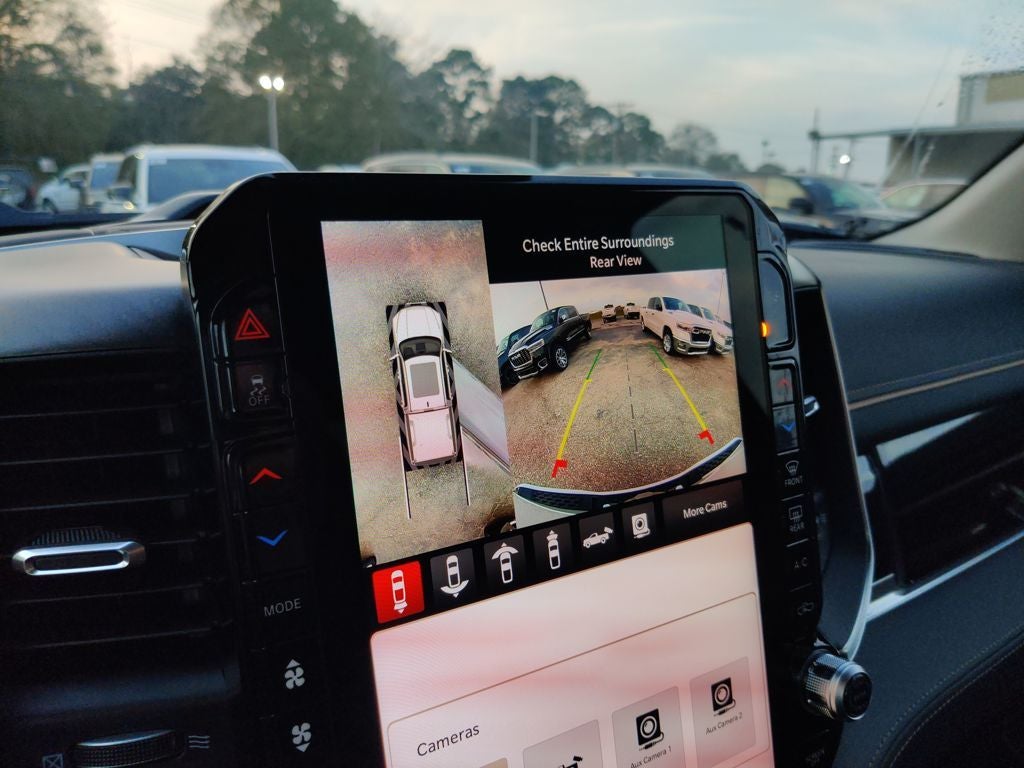 Bed Utility Group (Exterior 115V AC Outlet, MOPAR 4 Adjustable Cargo Tie-Down Hooks, and Truck Bed Cargo Divider), Quick Order Package 22V Tungsten, 12-Way/1-Way Trailer Connector, 3.92 Rear Axle Ratio, 4-Wheel Disc Brakes, ABS brakes, Adjustable pedals, Air Conditioning, Alloy wheels, AM/FM radio, Apple CarPlay/Android Auto, Audio memory, Auto High-beam Headlights, Auto Power-Folding Mirrors, Auto-dimming door mirrors, Auto-Dimming Exterior Driver Mirror, Auto-dimming Rear-View mirror, Auto-leveling suspension, Automatic temperature control, Bodyside moldings, Brake assist, Bumpers: body-color, Chrome Exterior Mirrors, Compass, Delay-off headlights, Driver door bin, Driver vanity mirror, Dual front impact airbags, Dual front side impact airbags, Electronic Stability Control, Exterior Mirrors Courtesy Lamps, Exterior Mirrors with Heating Element, Exterior Mirrors with Memory, Exterior Mirrors with Supplemental Signals, Exterior Parking Camera Rear, Front anti-roll bar, Front Bucket Seats, Front Center Armrest w/Storage, Front dual zone A/C, Front fog lights, Front License Plate Bracket, Front reading lights, Front wheel independent suspension, Fully automatic headlights, Garage door transmitter, Heads-Up Display, Heated door mirrors, Heated front seats, Heated rear seats, Heated steering wheel, Illuminated entry, Leather steering wheel, Low tire pressure warning, Manufacturer's Statement of Origin, Memory seat, Multi-Function Tailgate, MyFlexCare Service Plan, Navigation System, Occupant sensing airbag, Outside temperature display, Overhead airbag, Overhead console, Panic alarm, Passenger door bin, Passenger vanity mirror, Pedal memory, Power adjustable front head restraints, Power door mirrors, Power driver seat, Power moonroof, Power passenger seat, Power steering, Power windows, Premium Leather Bucket Seats, Radio data system, Radio: Uconnect 5 Nav with 14.4 Display, Rain sensing wipers, RAM's Head Badge, Rear anti-roll bar, Rear reading lights, Rear seat center armrest, Rear step bumper, Rear window defroster, Remote keyless entry, Remote Tailgate Release, Security system, Speed control, Split folding rear seat, Steering wheel mounted audio controls, Tachometer, Telescoping steering wheel, Tilt steering wheel, Traction control, Trailer Brake Control, Trip computer, Turn signal indicator mirrors, Variably intermittent wipers, Ventilated front seats, Ventilated rear seats, Voltmeter, and Wheels: 22 x 9 Polish/Painted with Inserts. Price includes: $1000 - 2026 National Bonus Cash . Exp. 03/31/2026