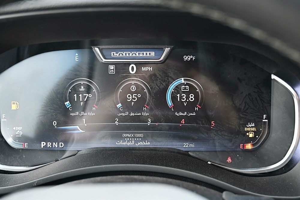 Laramie Level 1 Plus Equipment Group (#1 Seat Foam Cushion, 115V Auxiliary Rear Power Outlet, 2 Way Rear Headrest Seat, 2nd Row in Floor Storage Bins, 4 Way Front Headrests, Active Lane Management System, Adaptive Steering System, Anti-Spin Differential Rear Axle, Auto Adjust in Reverse Exterior Mirrors, Auto Dim Exterior Mirror, Auto High Beam Headlamp Control, Auto Power-Folding Mirrors, Auto-Dimming Exterior Passenger Mirror, Bucket Seats, Center Stop Lamp with Cargo View Camera, Chrome Exterior Mirrors, Drowsy Driver Detection, Dual Wireless Charging Pad, Exterior Mirrors Courtesy Lamps, Exterior Mirrors with Heating Element, Exterior Mirrors with Memory, Exterior Mirrors with Supplemental Signals, Foam Bottle Insert (door Trim Panel), Folding Flat Load Floor Storage, Forward and Reverse Utility Lights, Front Seat Back Map Pockets, Full Length Upgraded Floor Console, Heated Front Seats, Heated Steering Wheel, High Back Seats, Leather Trimmed Bucket Seats, LED Bed Lighting, Mirror Running Lights, MOPAR Deployable Bed Step, MOPAR Spray in Bedliner, Power 2-Way Driver Lumbar Adjust, Power 2-Way Passenger Lumbar Adjust, Power Adjust 8-Way Driver Seat, Power Adjust 8-Way Front Passenger Seat, Power Adjust Mirrors, Power Adjustable Pedals with Memory, Power Heated Fold Telescopic Mirrors with Memory, Power Telescoping Mirrors, Power-Adjustable Convex Aux Mirrors, Radio/Driver Seat/Mirrors/Pedals Memory, Rain Sensitive Windshield Wipers, Rear 60/40 Folding Seat, Remote Tailgate Release, Traffic Sign Recognition, and Ventilated Front Seats), Night Edition (Black Exterior Mirrors, Black Exterior Truck Badging, Black Wheel Center Hub, Body Color Grille-Surround, Gloss Black Grille Billets/Accents, Sport Performance Hood, and Wheels: 20 x 8.0 Black Painted Aluminum), Quick Order Package 24H Laramie, 10 Speakers, 4-Wheel Disc Brakes, 4G LTE Wi-Fi Hot Spot, ABS brakes, Air Conditioning, Alexa Built-in, Alloy wheels, AM/FM radio: SiriusXM with 360L, Apple CarPlay, Apple CarPlay/Android Auto, Auto-dimming Rear-View mirror, Automatic temperature control, Brake assist, Bumpers: body-color, Clearance Lamps, Compass, Connected Travel and Traffic Services, Connectivity - US/Canada, Delay-off headlights, Disassociated Touchscreen Display, Driver door bin, Driver vanity mirror, Dual front impact airbags, Dual front side impact airbags, Electronic Stability Control, Emergency Vehicle Alert System (EVAS), Engine Block Heater, For Details, Visit DriveUconnect.com, For More Info, Call 800-643-2112, Front anti-roll bar, Front Center Armrest w/Storage, Front dual zone A/C, Front fog lights, Front License Plate Bracket, Front reading lights, Fully automatic headlights, Garage door transmitter, Global Telematics Box Module, Google Android Auto, GPS Antenna Input, GPS Navigation, HD Radio, Heated door mirrors, Heated front seats, Heated steering wheel, Illuminated entry, Integrated Voice Command with Bluetooth®, Leather Trim 40/20/40 Bench Seat, Low tire pressure warning, Manufacturer's Statement of Origin, MOPAR Front and Rear Rubber Floor Mats, MyFlexCare Service Diesel, Navigation System, Occupant sensing airbag, Off-Road Info Pages, Outside temperature display, Overhead airbag, Overhead console, Panic alarm, ParkView Rear Back-Up Camera, Passenger door bin, Passenger vanity mirror, Power door mirrors, Power driver seat, Power passenger seat, Power steering, Power windows, Radio data system, Radio: Uconnect 5 Navigation with 12.0 Display, Rear anti-roll bar, Rear reading lights, Rear seat center armrest, Rear step bumper, Rear window defroster, Remote keyless entry, Security system, Selectable Tire Fill Alert, SiriusXM Radio Service, SiriusXM with 360L, Speed control, Split folding rear seat, Steering wheel mounted audio controls, Tachometer, Tilt steering wheel, Traction control, Trailer Tow Pages, Trip c Price includes: $1000 - 2026 National Bonus Cash . Exp. 02/0