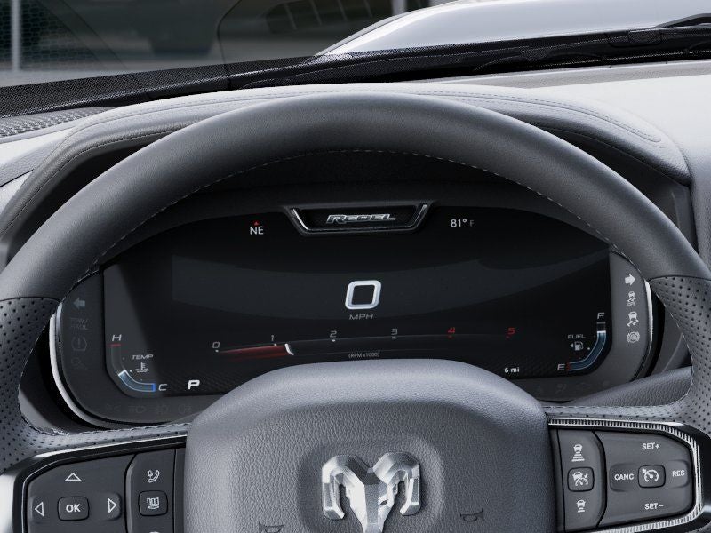 Quick Order Package 24R Rebel, Rebel Level 2 Equipment Group (115V Auxiliary Rear Power Outlet, 14.4 Touchscreen Display, 17 Speaker Harman/Kardon Premium Sound, 2 Way Rear Headrest Seat, 4 Way Front Headrests, 4G LTE Wi-Fi Hot Spot, Alexa Built-in, Aluminum Litho Instrument Panel Bezels with Black Trim, Apple CarPlay, Auto Adjust in Reverse Exterior Mirrors, Auto Dim Exterior Mirror, Auto High Beam Headlamp Control, Auto Power-Folding Mirrors, Auto-Dimming Exterior Passenger Mirror, Black Exterior Mirrors, Body Color Door Handles, Bucket Seats, Center Stop Lamp with Cargo View Camera, Connected Travel and Traffic Services, Connectivity - US/Canada, Disassociated Touchscreen Display, Dual Wireless Charging Pad, Emergency Vehicle Alert System (EVAS), Exterior Mirrors Courtesy Lamps, Exterior Mirrors with Heating Element, Exterior Mirrors with Memory, Exterior Mirrors with Supplemental Signals, Folding Flat Load Floor Storage, For Details, Visit DriveUconnect.com, For More Info, Call 800-643-2112, Forward and Reverse Utility Lights, Front Door Locks 2-Door Passive Entry, Front Passenger Interactive Display, Front Seat Back Map Pockets, Full Length Upgraded Floor Console, Global Telematics Box Module, Google Android Auto, GPS Antenna Input, GPS Navigation, HD Radio, Heated Front Seats, Heated Second Row Seats, Heated Steering Wheel, High Back Seats, Integrated Voice Command with Bluetooth®, Leather Trimmed Bucket Seats (NL), Leather Wrapped Grab Handle, Leather Wrapped Shift Control, LED Bed Lighting, LED Dome Lamp with on/Off Switch, LED Interior Lighting, Luxury Door Trim Panel, Media Hub with 2 Charge Only USBs, Mirror Running Lights, MOPAR Deployable Bed Step, MOPAR Front and Rear Rubber Floor Mats, MOPAR Spray in Bedliner, Off-Road Info Pages, Overhead LED Lamps, Power 2-Way Driver Lumbar Adjust, Power 2-Way Passenger Lumbar Adjust, Power Adjust 8-Way Driver Seat, Power Adjust 8-Way Front Passenger Seat, Power Adjust Mirrors, Power Adjustable Pedals with Memory, Power Deployable Running Boards, Power Heated Fold Telescopic Mirrors with Memory, Power Telescoping Mirrors, Power-Adjustable Convex Aux Mirrors, Premium Overhead Console, Radio: Uconnect 5 Nav with 14.4 Display, Radio/Driver Seat/Mirrors/Pedals Memory, Rain Sensitive Windshield Wipers, Rear 60/40 Folding Seat, Selectable Tire Fill Alert, SiriusXM Radio Service, SiriusXM with 360L, Sport Performance Hood, Sun Visors with Illuminated Vanity Mirrors, Trailer Tow Pages, Universal Garage Door Opener, and Ventilated Front Seats), Towing Technology Group (MOPAR Trailer Camera Wiring with No Camera, Surround View Camera System, Trailer Reverse Guidance, and Trailer Tire Pressure Monitoring System), 4-Wheel Disc Brakes, 5th Wheel/Gooseneck Towing Prep Group, 6 Speakers, ABS brakes, Adjustable pedals, Air Conditioning, Alloy wheels, AM/FM radio: SiriusXM with 360L, Apple CarPlay/Android Auto, Auto-dimming Rear-View mirror, Automatic temperature control, Black Wheel Center Hub, Block heater, Brake assist, Cloth Heated Power Bench Seat, Compass, Delay-off headlights, Driver door bin, Dual front impact airbags, Dual front side impact airbags, Electronic Stability Control, Front anti-roll bar, Front Center Armrest w/Storage, Front dual zone A/C, Front fog lights, Front License Plate Bracket, Front reading lights, Fully automatic headlights, Heated door mirrors, Heated front seats, Heated steering wheel, Illuminated entry, Leather steering wheel, Low tire pressure warning, Manufacturer's Statement of Origin, MyFlexCare Service Diesel, Navigation System, Occupant sensing airbag, Outside temperature display, Overhead airbag, Overhead console, Panic alarm, ParkView Rear Back-Up Camera, Passenger door bin, Passenger vanity mirror, Power door mirrors, Power driver seat, Power steering, Power windows, Radio data system, Radio: Uconnect 5 Navi Price includes: $1000 - 2026 National Bonus Cash . Exp. 04/3