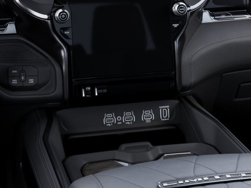 Cold Weather Group (Engine Block Heater and MOPAR Winter Front Grille Cover), Limited Level 1 Equipment Group (Active Lane Management System, Adaptive Steering System, Center Stop Lamp with Cargo View Camera, Digital Rearview Mirror, Drowsy Driver Detection, LED Bed Lighting, MOPAR Spray in Bedliner, MOPAR Trailer Camera Wiring with No Camera, Power Deployable Running Boards, Surround View Camera System, Traffic Sign Recognition, Trailer Reverse Guidance, and Trailer Tire Pressure Monitoring System), Max Tow Package (5th Wheel/Gooseneck Towing Prep Group, Auto Level Rear Air Suspension, Pickup Box, Vendor Painted Cargo Box, and Vendor Painted Cargo Box Tracking), Night Edition (Black Exterior Truck Badging, Black Grille Limited, Black Wheel Center Hub, Body Color Grille Surround, and Sport Performance Hood), Quick Order Package 24M Limited, Tow-Mode Digital Rearview Mirror Package (Tow-Mode Camera (Wired)), 17 Speakers, 3.42 Axle Ratio, 4-Wheel Disc Brakes, 6,000 lbs Front Axle with Hub Extension, ABS brakes, Adjustable pedals, Air Conditioning, Alloy wheels, AM/FM radio: SiriusXM with 360L, Apple CarPlay/Android Auto, Audio memory, Auto High-beam Headlights, Auto-dimming door mirrors, Auto-dimming Rear-View mirror, Automatic temperature control, Bodyside moldings, Box and Rear Fender Clearance Lamps, Brake assist, Bumpers: body-color, Center Hub, Clearance Lamps, Compass, Delay-off headlights, Driver door bin, Driver vanity mirror, Dual front impact airbags, Dual front side impact airbags, Dual Rear Wheel Fender Flare Tracking, Dual Rear Wheels, Electronic Stability Control, Front anti-roll bar, Front Bucket Seats, Front Center Armrest w/Storage, Front dual zone A/C, Front fog lights, Front License Plate Bracket, Front reading lights, Fully automatic headlights, Garage door transmitter, Genuine wood console insert, Genuine wood dashboard insert, Genuine wood door panel insert, harman/kardon® Speakers, Heated door mirrors, Heated front seats, Heated rear seats, Heated steering wheel, Illuminated entry, Leather steering wheel, Low tire pressure warning, Manufacturer's Statement of Origin, Memory seat, My FlexCare Service Diesel, Navigation System, Occupant sensing airbag, Outside temperature display, Overhead airbag, Overhead console, Panic alarm, ParkView Rear Back-Up Camera, Passenger door bin, Passenger vanity mirror, Pedal memory, Power door mirrors, Power driver seat, Power passenger seat, Power steering, Power Sunroof, Power windows, Radio data system, Radio: Uconnect 5 Nav with 14.4 Display, Rain sensing wipers, Rear reading lights, Rear seat center armrest, Rear step bumper, Rear window defroster, Remote keyless entry, Security system, Speed control, Split folding rear seat, Steering wheel mounted audio controls, Tachometer, Tilt steering wheel, Traction control, Trip computer, Turn signal indicator mirrors, Ultra Premium Leather Seats, Variably intermittent wipers, Ventilated front seats, Voltmeter, Wheels: 17 x 6.0 Black Machined Aluminum, Wheels: 17 x 6.0 Polished Aluminum, and Wheels: 20 x 8 Diamond Cut Aluminum. Price includes: $1000 - 2026 National Bonus Cash . Exp. 04/30/2026