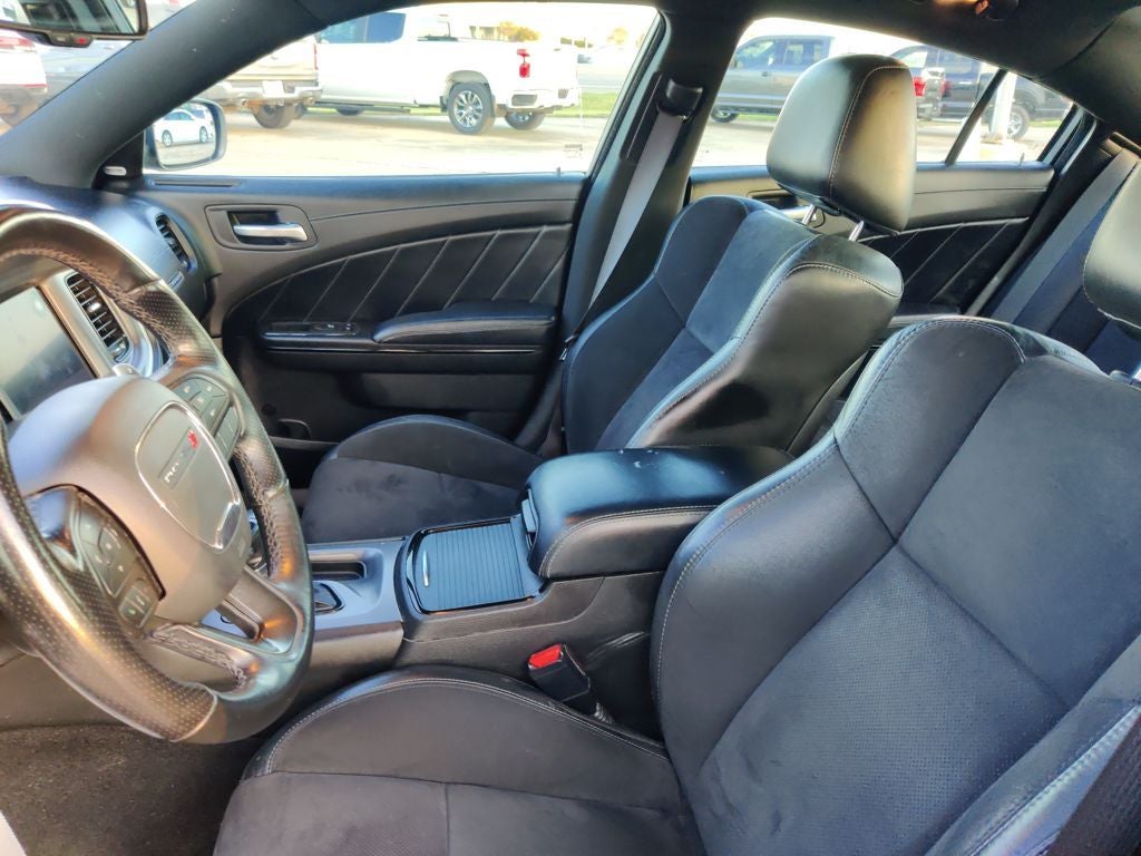 Blacktop Package (Black 1-Piece Performance Spoiler, Black Badge, Black Dodge Grille Badge, Gloss Black I/P Cluster Trim Rings, Rhombi 2-Pc Wheel Center Cap, Satin Black Charger Decklid Badge, Satin Black Dodge Tail Lamp Badge, and Wheels: 20 x 8 Black Noise Painted), Plus Group (Auto Adjust In Reverse Exterior Mirrors, Auto-Dimming Exterior Driver Mirror, Bi-Function HID Projector Head Lamps, Black-Edged Premium Floormats, Blind Spot & Cross Path Detection, Blind Spot Memory/Power/Heat Mirror, Body Color Exterior Mirrors, Deluxe Security Alarm, Driver & Passenger Lower LED Lamps, Exterior Mirrors Courtesy Lamps, Exterior Mirrors w/Heating Element, Front & Rear LED Map Pockets, Front Overhead LED Lighting, Heated 2nd Row Seats, Heated Front Seats, Heated Steering Wheel, Illuminated Rear Cupholders, Nappa/Alcantara Performance Seat, Power 2-Way Driver Lumbar Adjust, Power 2-Way Passenger Lumbar Adjust, Power Front Driver/Passenger Seats, Power Tilt/Telescope Steering Column, Premium-Stitched Dash Panel, Radio/Driver Seat/Mirrors Memory, Rear Seat Armrest w/Storage Cupholder, Ventilated Front Seats, and Wheels: 20 x 8 Satin Carbon Aluminum), Quick Order Package 2EH, Black Artificial Leather, 4-Wheel Disc Brakes, 6 Speakers, ABS brakes, Air Conditioning, Alloy wheels, AM/FM radio: SiriusXM, Anti-whiplash front head restraints, Apple CarPlay, Apple CarPlay/Android Auto, Auto-dimming Rear-View mirror, Automatic temperature control, Brake assist, Bumpers: body-color, Cloth Performance Seats, Compass, Delay-off headlights, Driver door bin, Driver vanity mirror, Dual front impact airbags, Dual front side impact airbags, Electronic Stability Control, Emergency communication system: SiriusXM Guardian, Four wheel independent suspension, Front anti-roll bar, Front Bucket Seats, Front Center Armrest, Front dual zone A/C, Front fog lights, Front reading lights, Fully automatic headlights, Garage door transmitter: HomeLink, Google Android Auto, GPS Antenna Input, Heated door mirrors, Illuminated entry, Integrated Center Stack Radio, Integrated Voice Command w/Bluetooth®, Knee airbag, Leather Shift Knob, Low tire pressure warning, Media Hub (2 USB, AUX), Occupant sensing airbag, Outside temperature display, Overhead airbag, Overhead console, Panic alarm, ParkView Rear Back-Up Camera, Passenger door bin, Passenger vanity mirror, Power door mirrors, Power driver seat, Power steering, Power windows, Radio: Uconnect 4C w/8.4 Display, Rear anti-roll bar, Rear reading lights, Rear seat center armrest, Rear window defroster, Remote keyless entry, Speed control, Speed-Sensitive Wipers, Split folding rear seat, Spoiler, Sport steering wheel, Steering wheel mounted audio controls, Tachometer, Telescoping steering wheel, Tilt steering wheel, Traction control, Trip computer, USB Host Flip, Variably intermittent wipers, and Wheels: 20 x 8 Satin Carbon Painted.