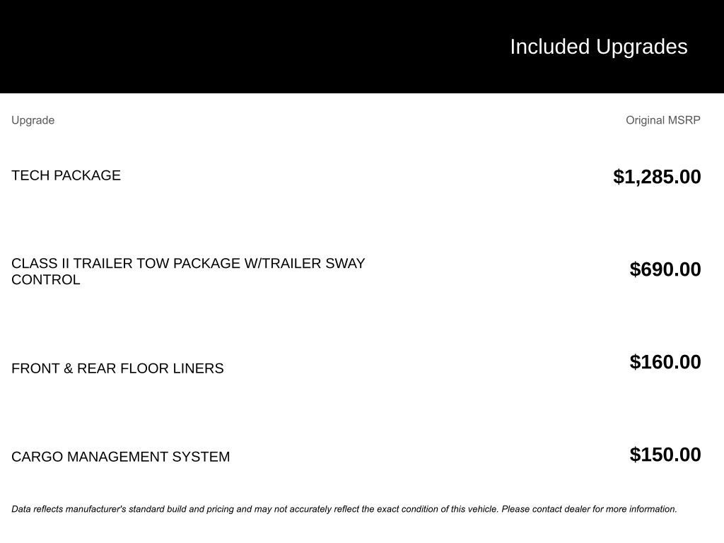 Max payload/towing estimate ratings shown. Additional options, equipment, passengers, and cargo weight may affect payload/towing weights. See dealer for details.